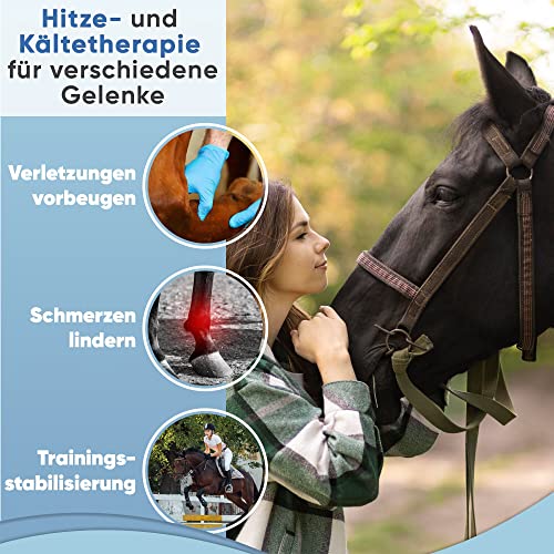 ☑️ Hoogwaardige gel – afhankelijk van welk probleem je paard plakt, kan onze stalgamas een noodzakelijke oplossing zijn door het als koelkompres of als warmtekompres te dienen. Alles wat je nodig hebt is een vriesvak voor een koeltherapie of een magnetron voor warmtetherapie. Als er geen magnetron aanwezig is, kan de paardenbandage ook in heet water worden verwarmd.
