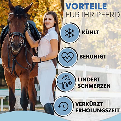 ICEHOF Koel-beenkappen paard (stevige grip) – aangenaam bovenmateriaal – 2 afneembare koelelementen en bandage wasbaar – koeltas ook beschermende functie – koelbandage voor paarden (4 stuks)