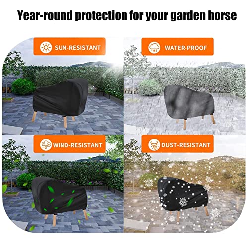 Houten paard, 420D Oxford, waterdicht dekzeil voor houten paard, uv-bestendig tuinpaard, dekzeil voor houten paard, beschermhoes met winddicht trekkoord