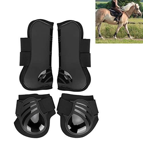 Specification: 4 Stuks Paard Beenbeschermer Elastische PU Paard Voor Achterbeen Laarzen Paardrijden Pees Kogelbeschermers Schokabsorberende Show Concurrentie Beenbescherming (M-Zwart)