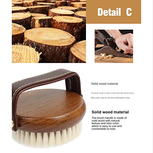 [Natuurlijk en milieuvriendelijk]: de extra zachte wol verwijdert los vuil en fijn haar. het handvat is gemaakt van echt hout, ovaal van vorm, en past in je handpalm voor een betere controle; de met de hand bewerkte leren band biedt een comfortabele en gemakkelijke grip.