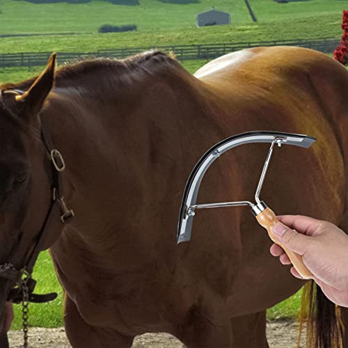 Specification: Paardenzweetschraper, roestvrijstalen schuurborstel, borstel voor paardenverzorging, paardenborstelschraper, paardenborstel met houten handvat (Wooden)