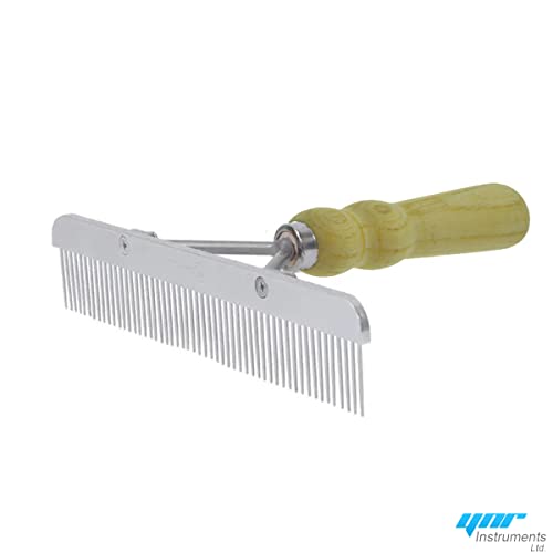 Gebruik de YNR Stainless Steel Show Comb om uw vee te verzorgen. Met zowel lange als korte tanden ontwerp stimuleert de kam de groei van de ondervacht en behoudt ook de pluis van het langere tophaar. Op maat gemaakte houten handgrepen zijn gegroefd voor een handige grip tijdens het hanteren. Het losmaken van de schroef wordt voorkomen met de slimme schroef- en borgmoer combinatie, ook terwijl het vervangen van de messen eenvoudiger wordt.