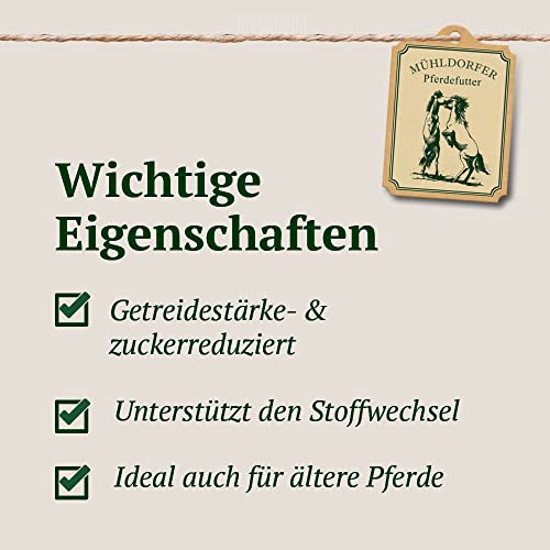 Specification: Mühldorfer Mash Sensitive Prebiotic, 3 kg, graanzetmeel en suikergereduceerd paardenvoer, voor het voeden van magere of zware paarden